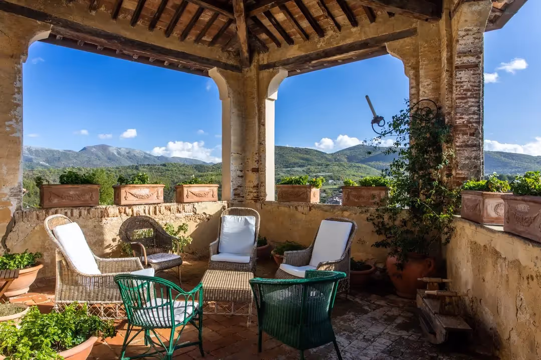The Palazzo has been lovingly restored with painstaking attention to detail. The salotto, with its eighteenth century frescoes, comfortable furniture and terracotta floors, offers a cool respite from the sweltering midday sun. In addition, there is a large billiard room, complete with games and a library of English books. The loggia (a covered terrace) with its 70 feet in length provides a wonderfully cool vantage point for viewing the surrounding countryside through a series of arches.